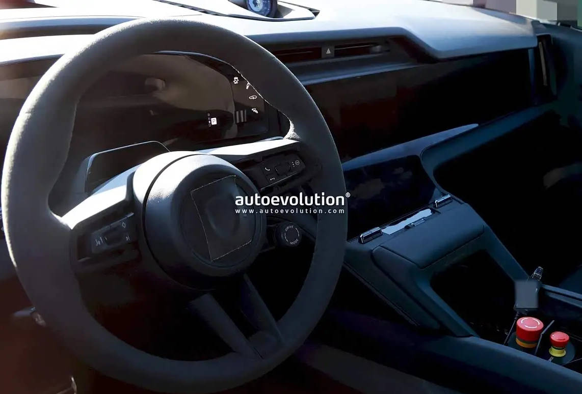 車尾部分,新車配備了大尺寸的可電動伸縮的后擾流板,并配置了格尼襟翼。尾燈組造型預計依舊是貫穿式設計,其光源面積有所增加。新車的后包圍被設計成了分層式的結構,兩側配備了縱向布局的通風口裝飾,同時還配備了尾部擴散器裝飾面板,整體尾部造型較厚,但是經過多層結構布局,在視覺上并不那么臃腫。