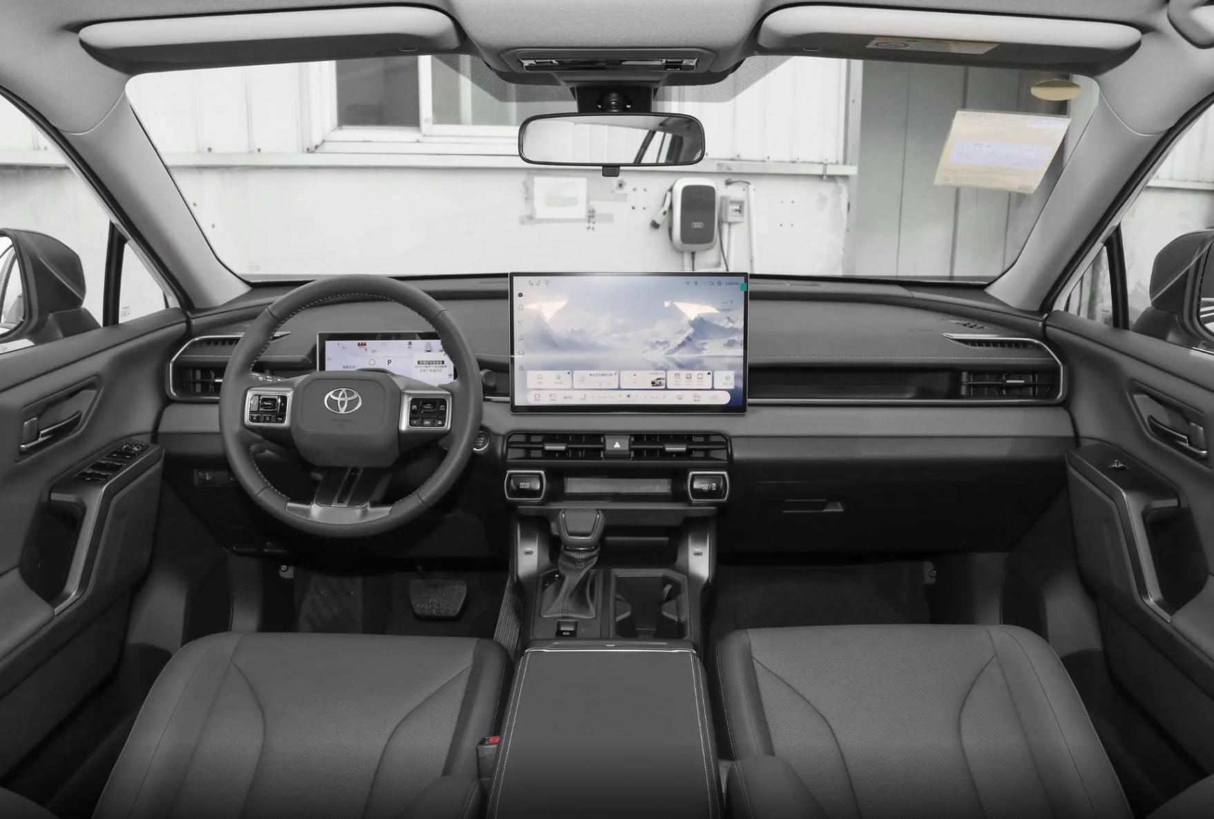 外觀上,這車走的是硬派實用的風格,沒有拍腦門的噱頭,給人的第一印象就是扎實。它采用了所謂的“雙臉設計”,不同驅動版本的外觀有細微差別,能滿足不同人群的偏好。四驅車型還標配Adventure越野套件,黑色雙橫幅前格柵搭配粗壯的鍍鉻飾條,中間的豐田LOGO在解鎖時會漸進點亮,看上去既有野性又顯得講究。格柵兩側的C形LED大燈很有攻擊性,三段式的光源布局,日間行車燈沿輪廓延展,與格柵呼應得很到位。不管白天還是夜晚,辨識度都挺高。前臉下方是大面積的黑色防刮材料,中間有銀色護板,兩側還有方形霧燈和寬大的導風槽,這些設計不僅看起來更硬派,還實打實能保護底盤、給剎車降溫,日常用車里省心的點就挺多。兩驅版本就換成了蜂窩狀格柵,鍍鉻飾條更細,風格偏向城市時尚,日常在市區穿梭,顯得干凈利落。