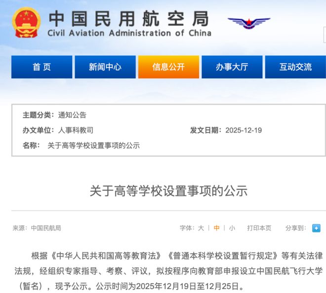 就先提一個最近有了新變化的學校,中國民用航空飛行學院,這名字聽著感覺像專科,可就在2025年12月19日,民航局發布了一個公示,要把這所學院的名字往上提一提,變成大學,新名字擬定為中國民航飛行大學,等公示的時間一過,它很可能就成了國內第一個叫“飛行大學”的本科學校了。