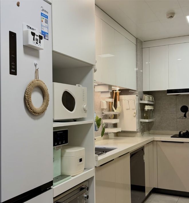 別的不說,像是烤箱、微波爐這類小電器,完全可以集中收納在這高柜內,將縱向空間充分利用起來。