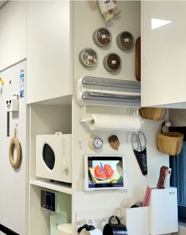有很多需要時常拿下放上去的餐廚具等物品,其實用磁吸收納的方式要更加靈活實用一些。