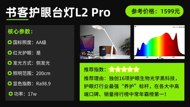 學(xué)生護眼燈品牌排行前十名第一名:書客護眼臺燈L2 Pro
