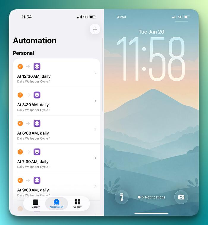自動(dòng)化腳本會(huì)在設(shè)定好的時(shí)間點(diǎn)自動(dòng)運(yùn)行,更換壁紙。我不需要手動(dòng)操作,甚至不需要打開任何 App。每次解鎖,我看到的壁紙都完美契合當(dāng)下的氛圍。