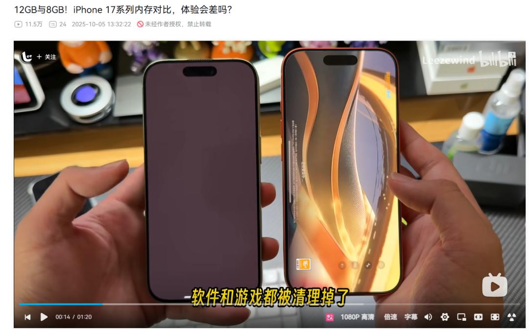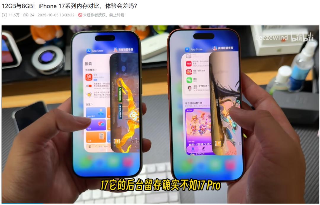 但是你用搭載12G運存的iPhone17Pro、iPhone Air等機型,就要好很多了,起碼沒什么感知。
