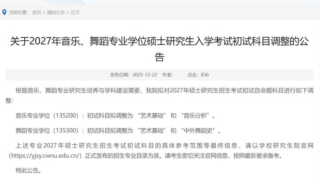 日前,部分招生單位發布了27研考初試調整的信息,一起來看看。同時提醒大家,要關注招生單位發布的考試相關動態,及時調整備考安排。
