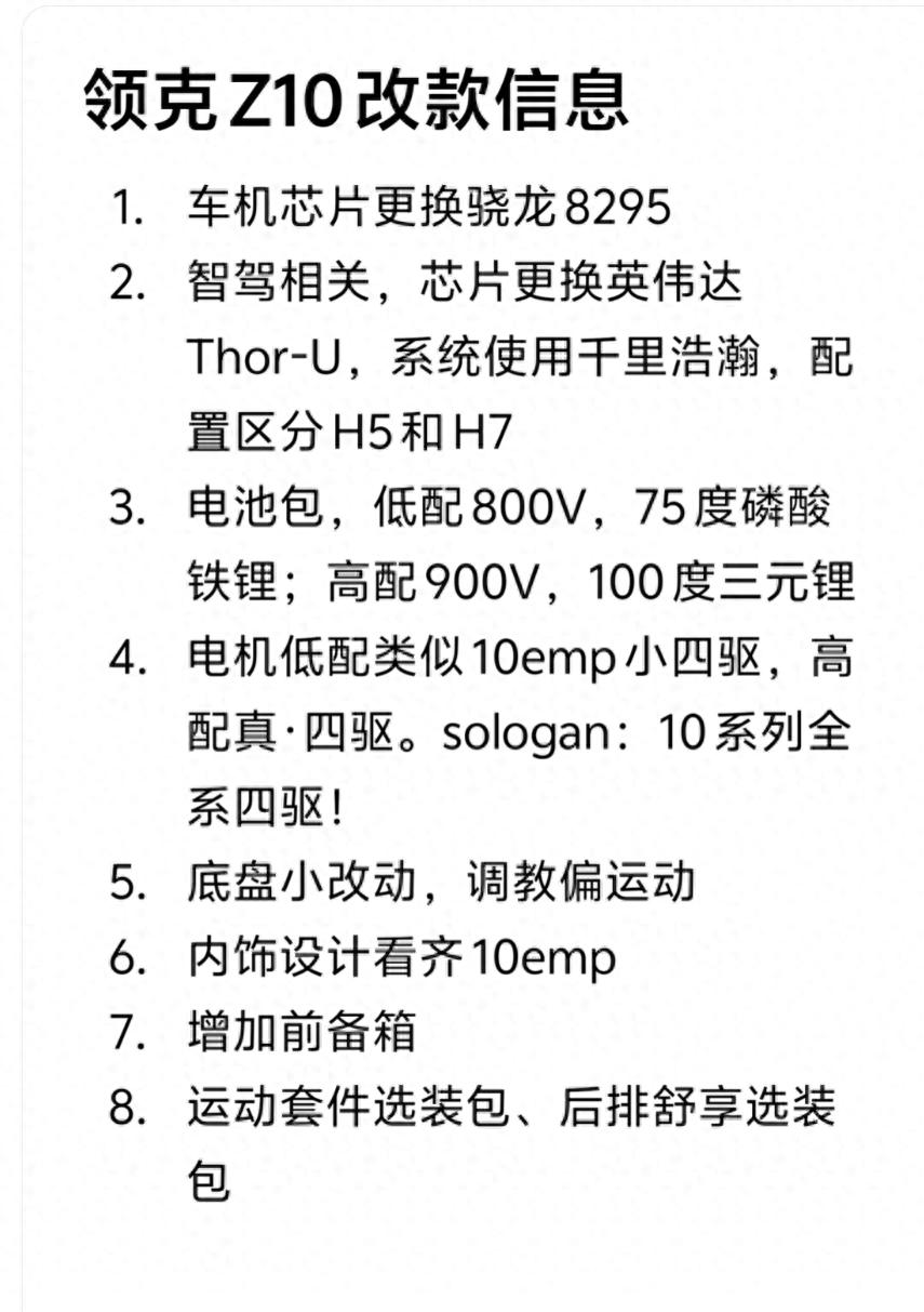在智能化與續航方面,參考當下新能源汽車的發展趨勢,改款領克Z10有望升級車機系統,搭載更流暢的操作系統和更智能的語音交互功能,同時可能優化電池管理系統,提升續航里程和充電效率。對于日常通勤和周末短途出行的用戶來說,這些升級都能直接提升用車體驗,解決續航焦慮和智能交互不便捷等痛點。