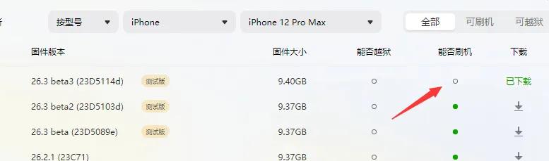 目前愛思助手還未更新此版本可刷,但你可以手動下載此固件,導入刷機即可。
