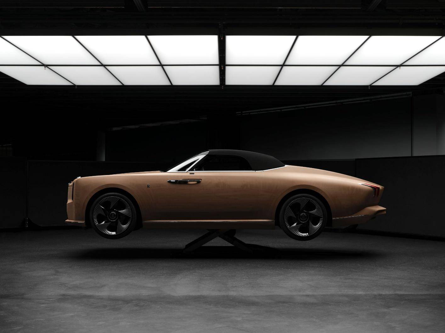 車身側(cè)面下部,一個漸進內(nèi)凹的雕塑設(shè)計進一步強化了其中央車身座艙,并與堅固的碳纖維門檻保持平衡,后者則微妙地致敬了勞斯萊斯歷史經(jīng)典車型上的側(cè)踏板設(shè)計。