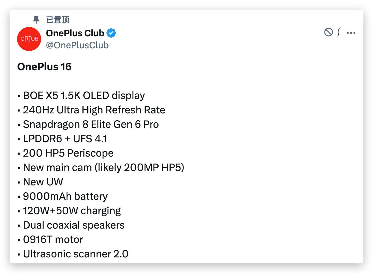 主攝據說也是三星HP5,雖說看底的大小不算突出,但2億像素也算是個賣點所在,反正從一加16的影像爆料來看,一加16算是重新回到全能旗艦的路線。