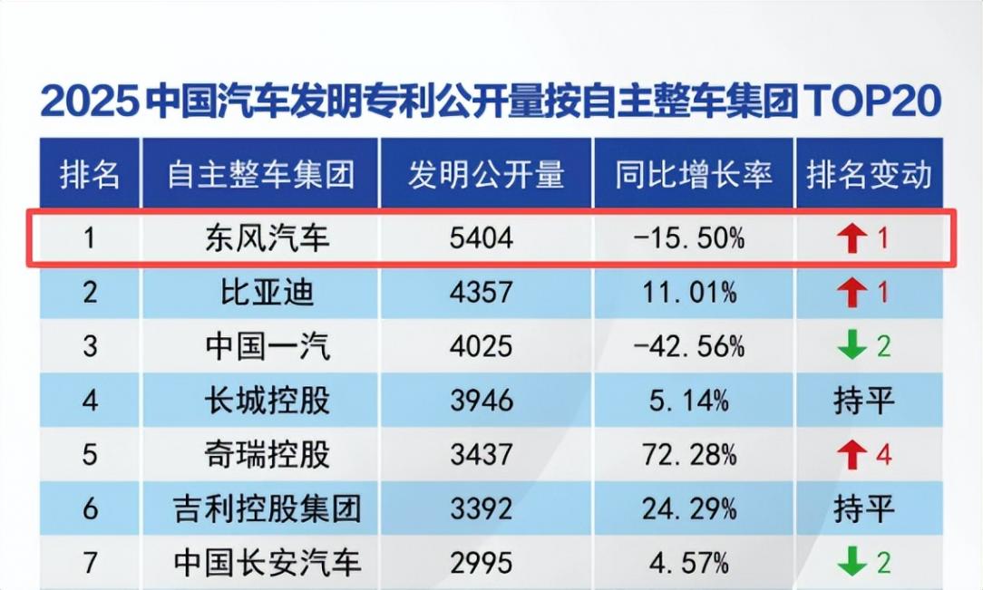 中汽信科數據顯示,2025年,東風汽車發明專利授權量達3442件,發明專利公開量5404件,智能網聯領域有效專利2049件,拿下“三項第一”。而且,截至2025年12月,東風汽車已經擁有超過2.83萬件的有效專利,領跑行業。