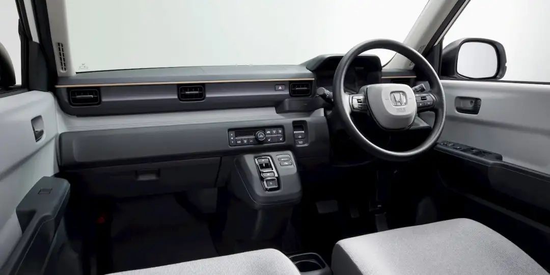 進入車內,N?ONE?e設計較為簡潔,與國內車企追求大尺寸屏幕不同,新車基礎版并未提供中控屏,而是保留了實體按鍵與多媒體控制按鈕。即便是配有9英寸Honda?Connect屏幕的版本,依然保留了物理按鍵。看圖片大家有沒有一種感覺,本田的這臺小車有種讓車回歸本身的“返璞歸真”。