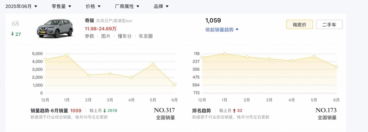 日產在2026年推出了新款Rogue SUV,重點加了更酷的暗黑版。爽!這車在國外賣二十多萬,但在中國它對應的奇駿卻賣得不行。