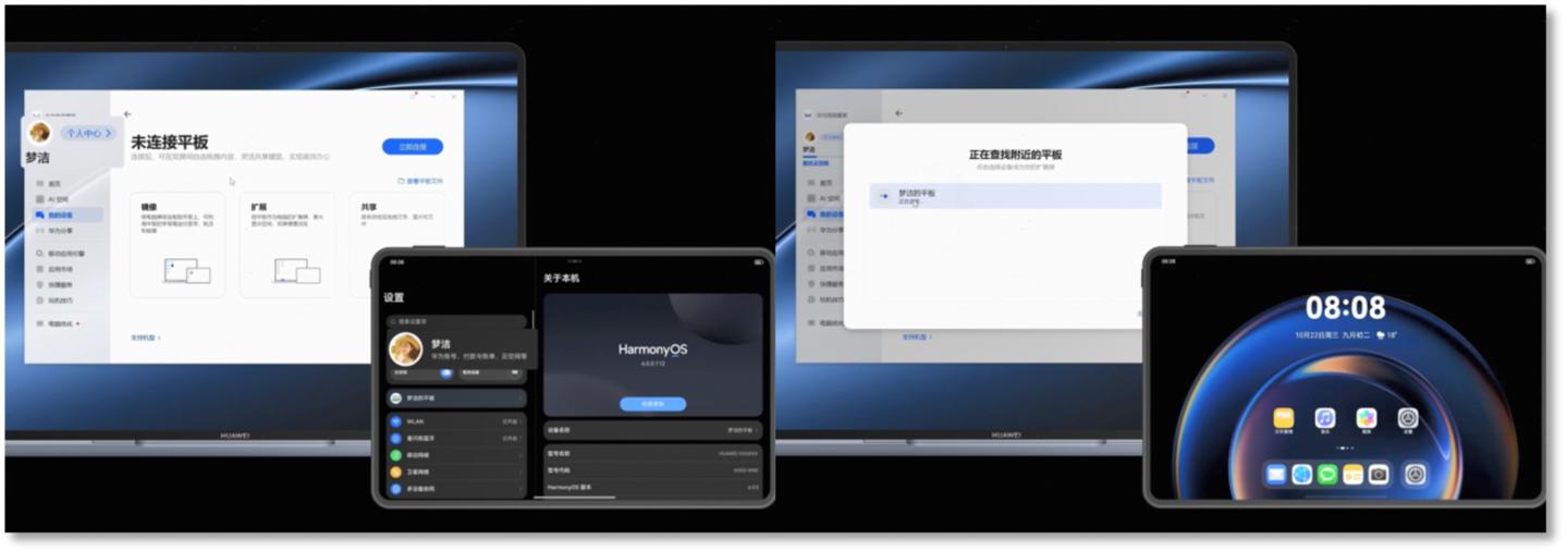 - ① 完成多屏協同連接(手機 / 電腦與平板登錄同一賬號、開啟 WLAN 與藍牙,控制中心超級終端完成配對);