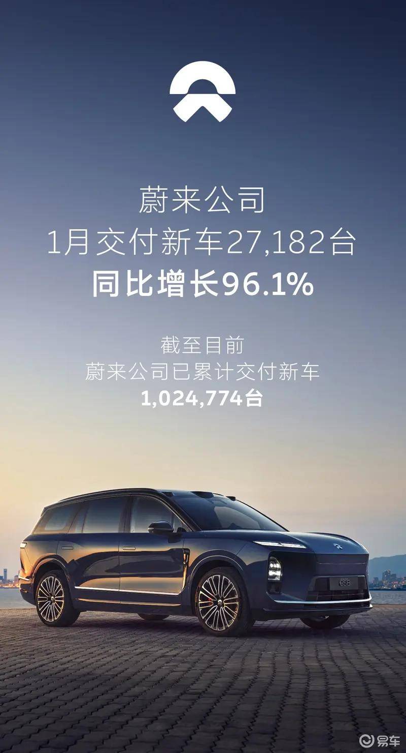 蔚來,或者說是“蔚樂螢”,1月交付27182輛,環比下滑44%,同比增長96%。