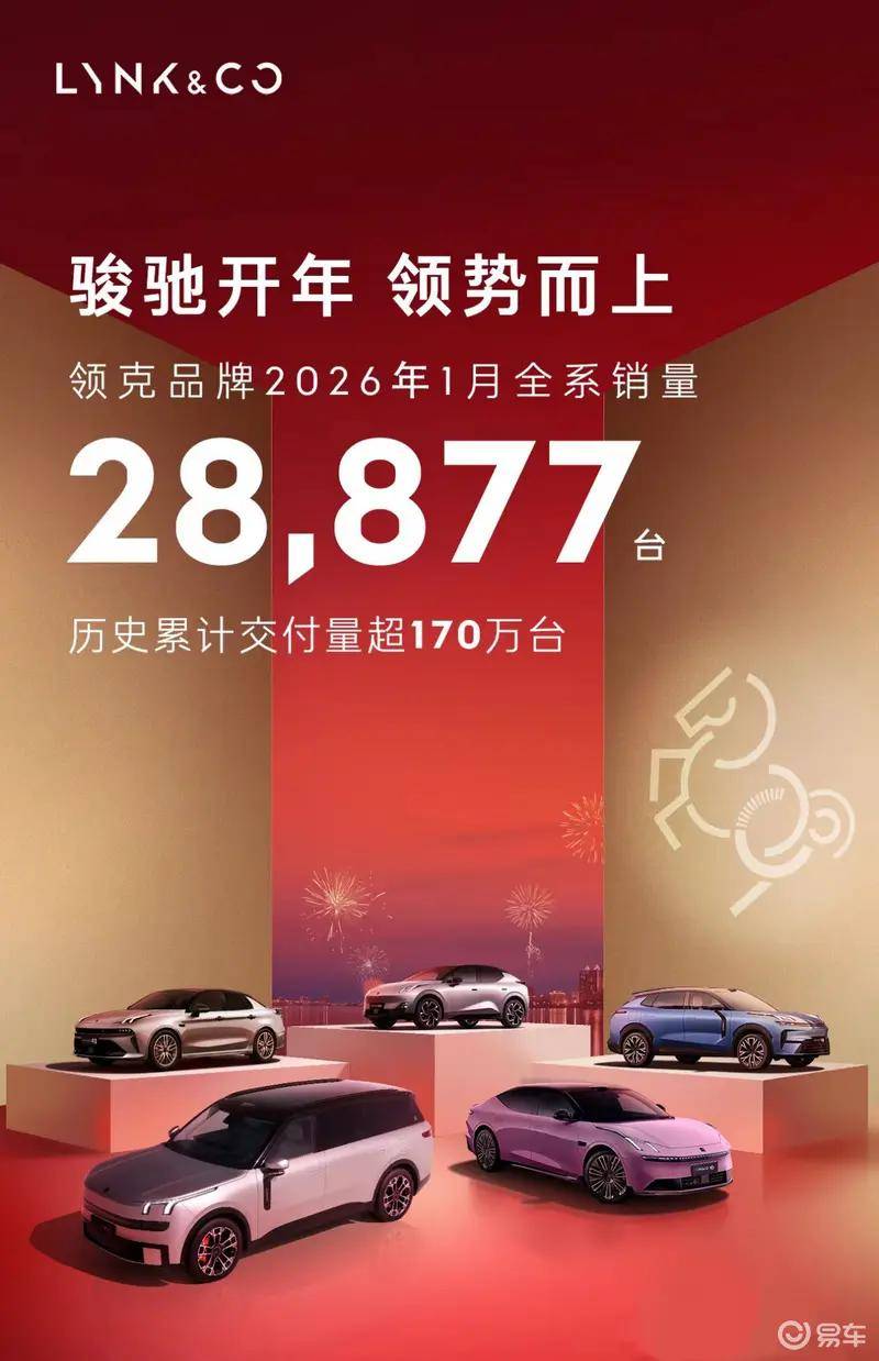 其中,極氪品牌1月交付23852輛;領克品牌1月銷量為28877輛。