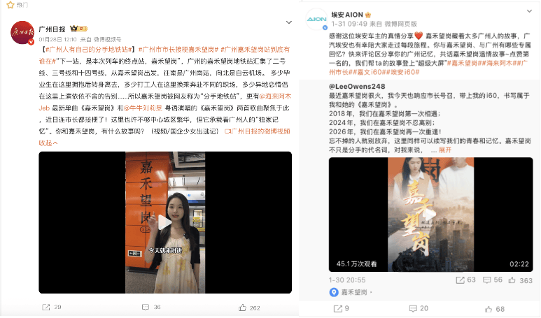 當所有車企還在蹭春節(jié)的熱度時,廣汽埃安則以最快速度蹭上了一座城市、一座地鐵站的情感熱度。