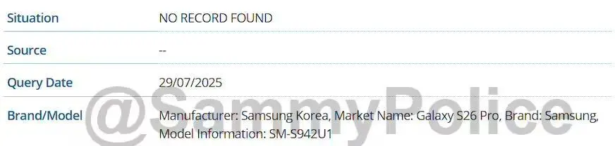 7 月 31 日消息,科技媒體 SammyPolice 于 7 月 29 日發(fā)布博文,通過挖掘 GSMA IMEI 數(shù)據(jù)庫,發(fā)現(xiàn)了新的證據(jù),表明三星 Galaxy S26 標(biāo)準(zhǔn)版將會(huì)被 Galaxy S26 Pro 替代。