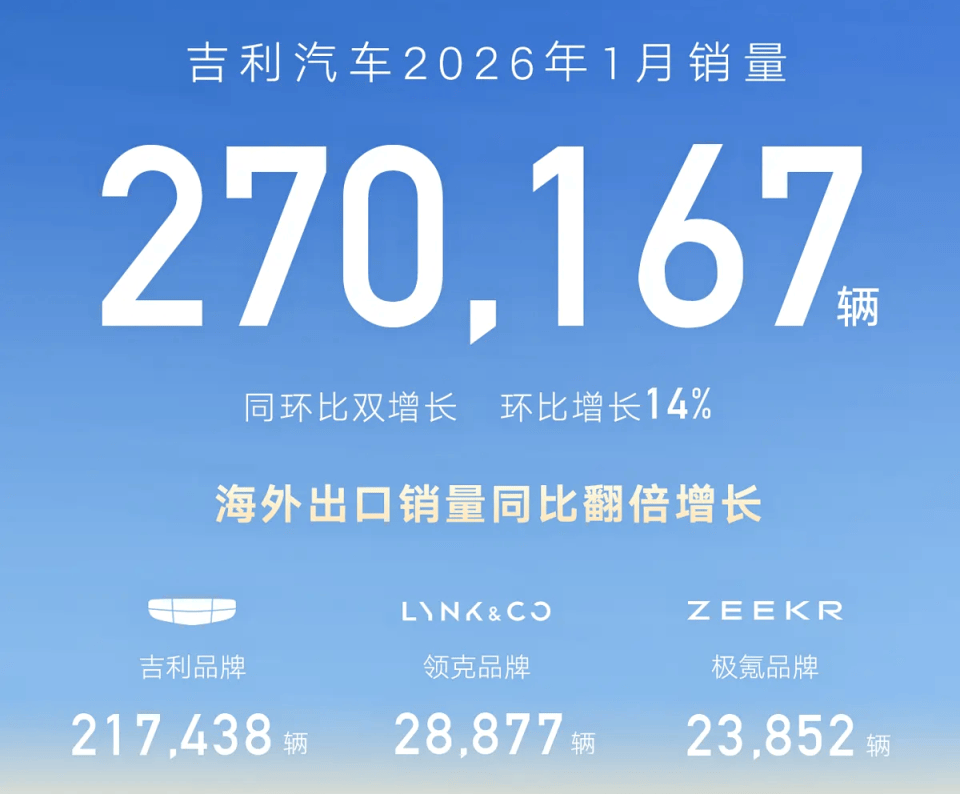 2026年1月銷量,吉利超越比亞迪,誰拿了開門紅誰又開門涼?