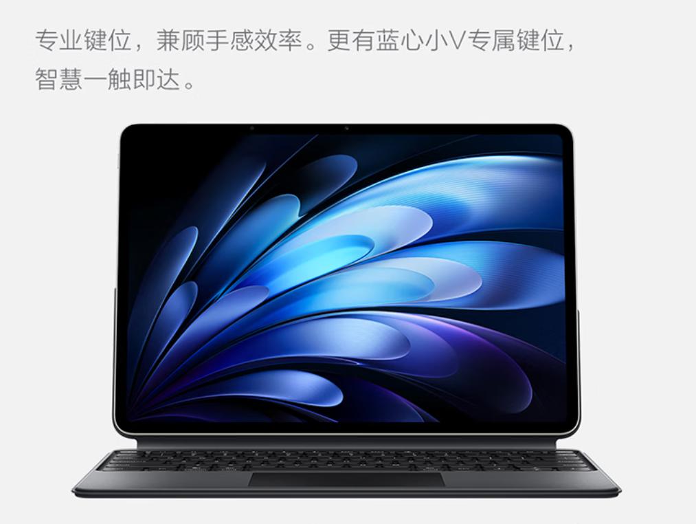 音頻方面,配備八揚聲器全景聲學系統,支持杜比全景聲。此外,還支持Wi-Fi 6、藍牙5.4、USB 3.2 Gen1等數據連接功能,運行OriginOS 5 HD系統,集成PC級WPS、AI會議轉寫等生產力工具,配套磁吸鍵盤與vivo Pencil3手寫筆提升辦公效率。