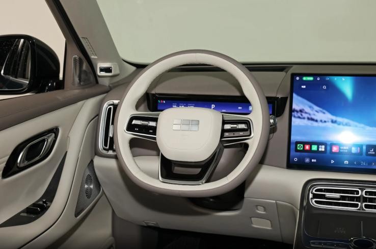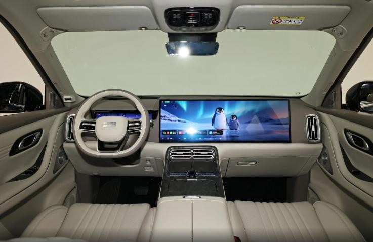 至于座艙,新車將采用主流的2+2+2六座布局,前排采用領(lǐng)克900同款一體式貫穿大屏,另借鑒了超窄儀表屏設(shè)計,搭配HUD抬頭顯示,輔以T字型環(huán)抱中控臺設(shè)計和大面積的淺色軟包材質(zhì)和仿木紋飾板來看,座艙的氛圍感頗為高級,賣相完全不遜于售價高達(dá)30-40萬的競品。此外,這套車機(jī)屏的顯示細(xì)膩度也在線,UI布局合理便于操控,加之中央通道還提供了雙手機(jī)無線充電、水晶多媒體旋鈕、鍍鉻物理實(shí)體按鍵等功能布局,所以就座艙設(shè)計來說,沒有明顯的短板。