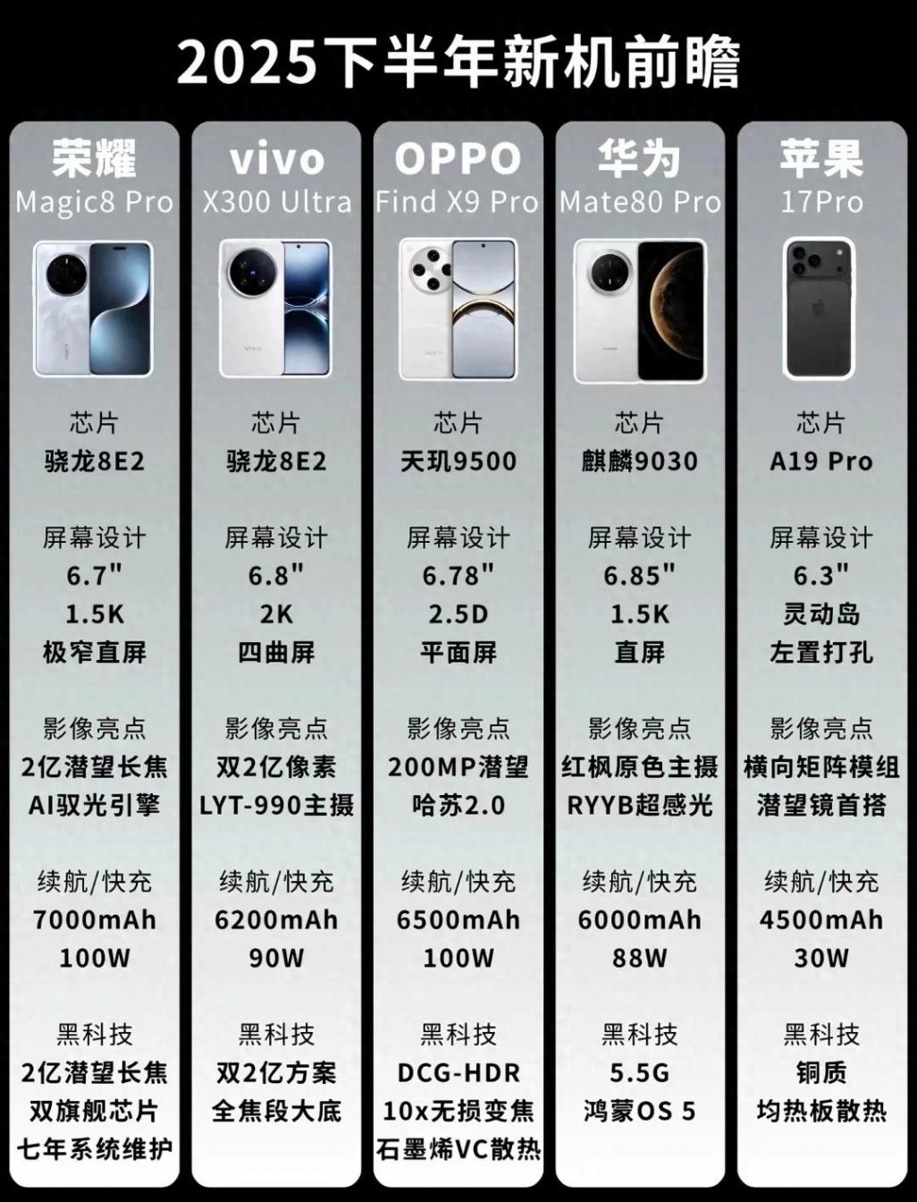 手機黨狂喜!2025下半年各大品牌新機參數全曝光,榮耀、vivo、OPPO、華為、蘋果 神仙打架,看點拉滿
