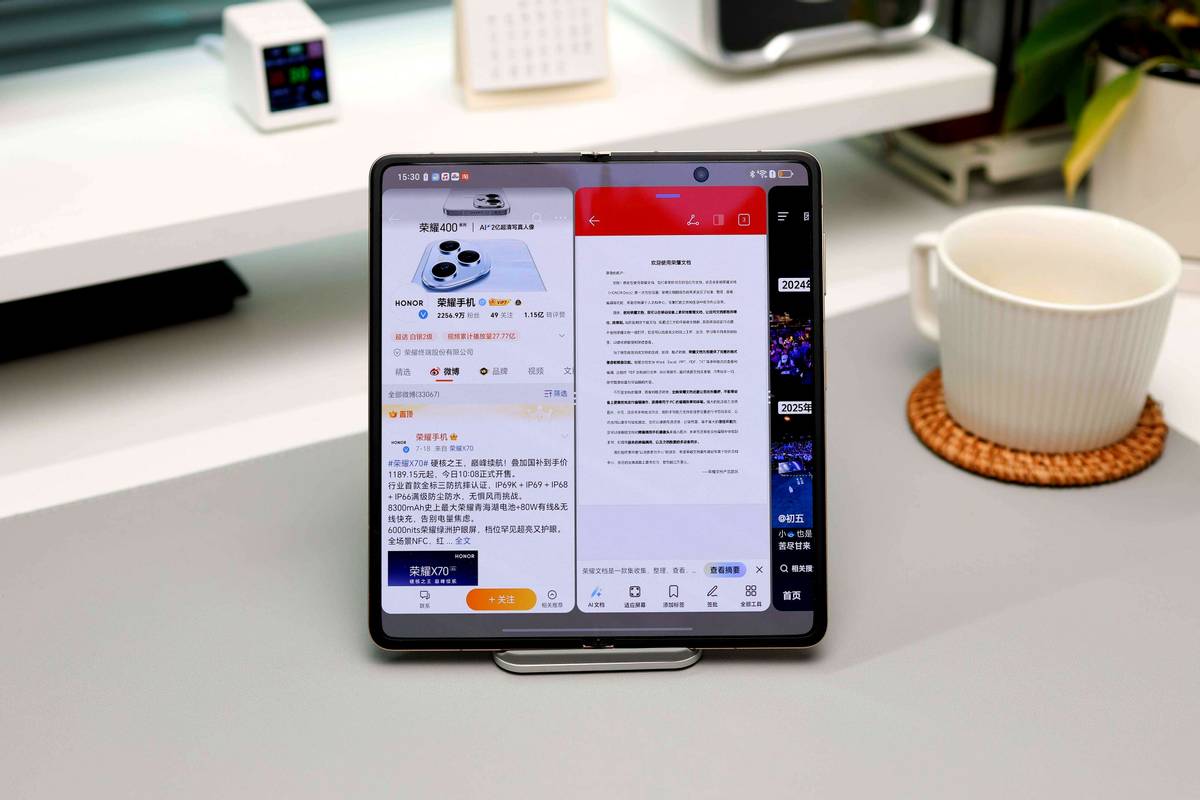 真機體驗過就知道這次榮耀玩真的,折疊狀態跟普通手機沒區別,展開當平板用也不墜手。
