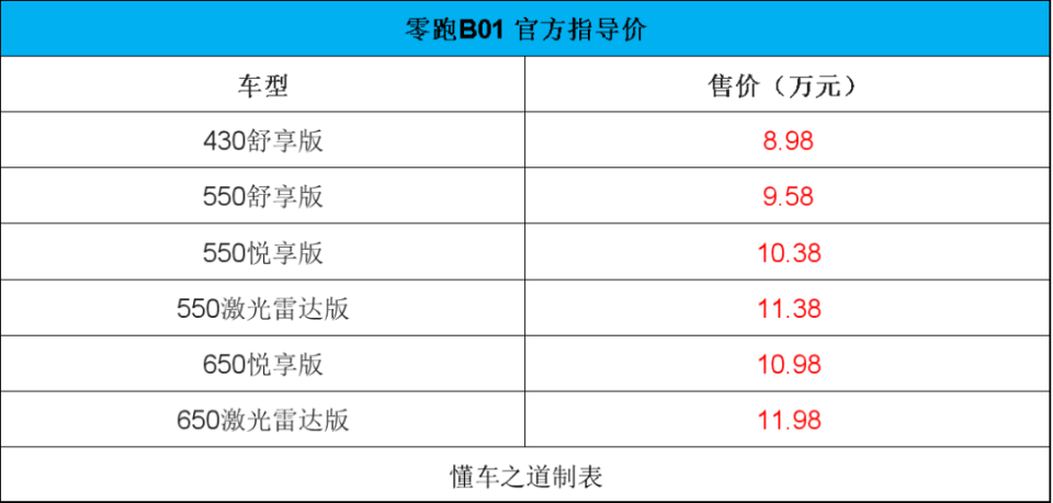7月24日,零跑B系列第二款車型零跑B01正式上市,新車共推出6款車型,售價(jià)區(qū)間8.98-11.98萬元。新車基于全新LEAP 3.5技術(shù)架構(gòu)打造,搭載了激光雷達(dá)端到端輔助駕駛、高通8295+8650雙旗艦芯片等高端配置。