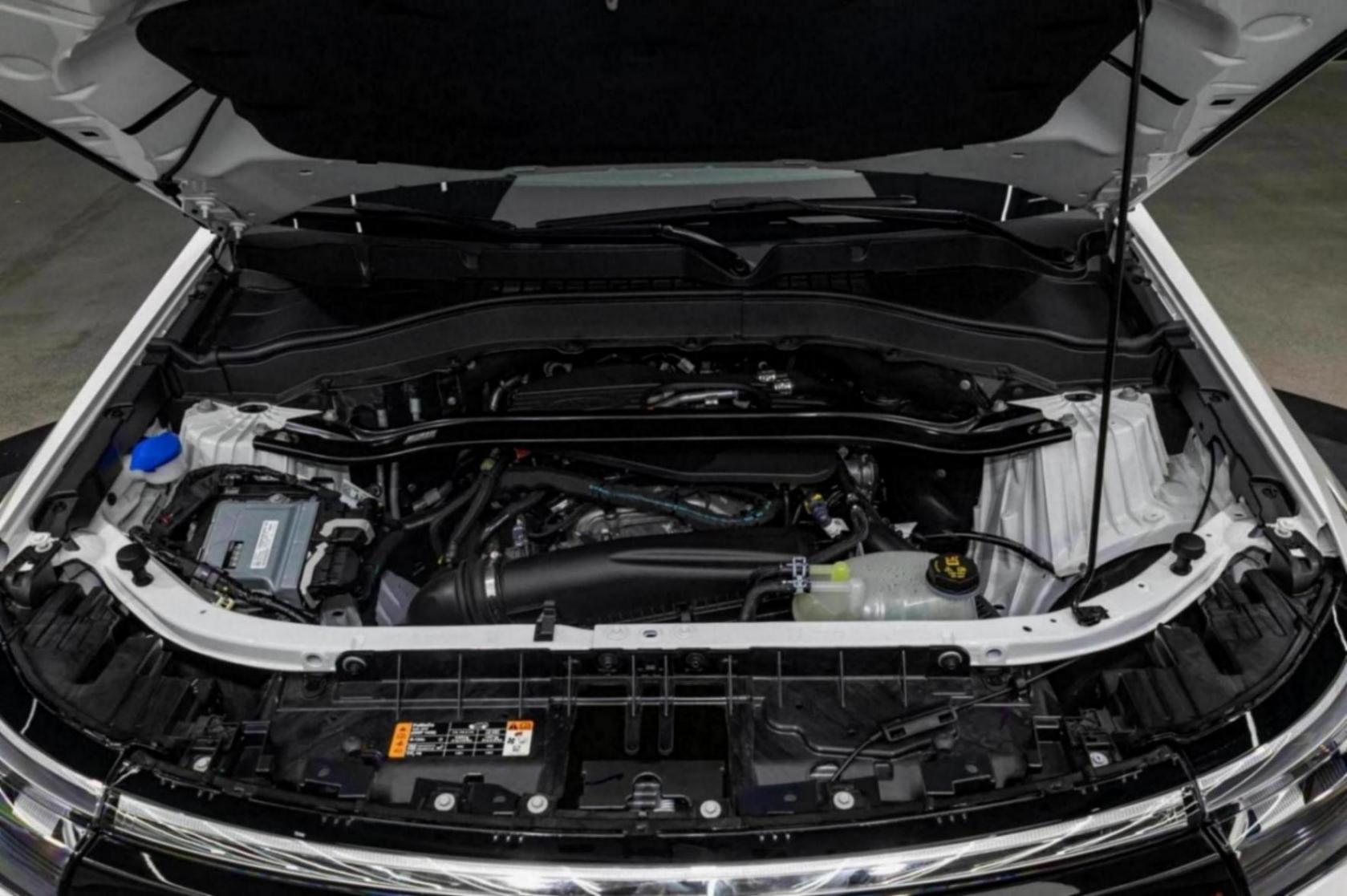 外觀部分沒有做大幅度改動(dòng),主要通過細(xì)節(jié)調(diào)整強(qiáng)化風(fēng)格統(tǒng)一性。前臉格柵采用亮黑色蜂窩樣式,內(nèi)部飾條寬度有所增加,搭配橙色裝飾條,視覺效果更有層次。前后保險(xiǎn)杠配備金屬護(hù)板,拖車鉤位置用橙色做點(diǎn)綴,兼顧實(shí)用與視覺效果。車身尺寸為5066mm,軸距3025mm,側(cè)面線條保持了車系一貫的風(fēng)格,體量感清晰。18英寸熏黑輪轂搭配紅色制動(dòng)卡鉗,原廠配備AT全地形輪胎,無需后期改裝即可應(yīng)對(duì)非鋪裝路面。車尾配備貫穿式LED尾燈,排氣為隱藏式設(shè)計(jì),新增的圖騰與徽章標(biāo)識(shí),能夠區(qū)分車型版本。從實(shí)際觀感來看,這套設(shè)計(jì)在保留硬朗風(fēng)格的同時(shí),增加了戶外屬性,風(fēng)格偏向?qū)嵱门c個(gè)性,適合既需要日常代步、又有輕越野需求的用戶。