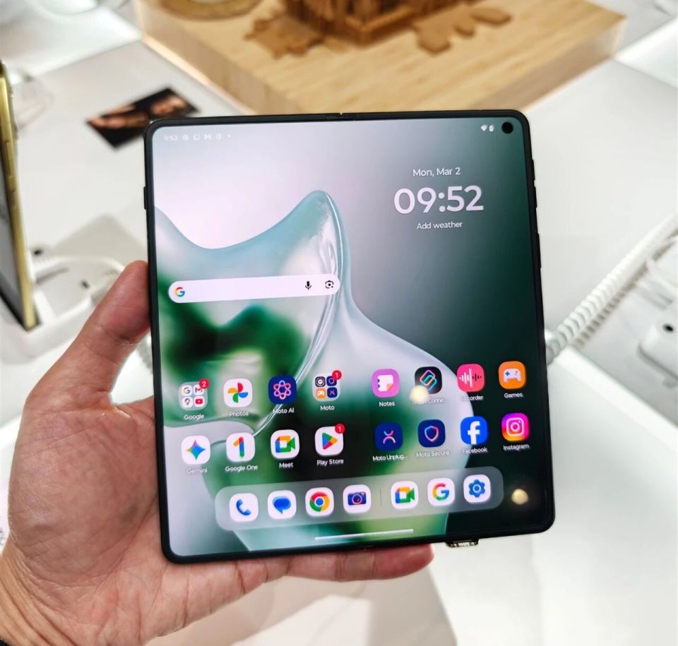 3月初的MWC 2026上,聯想moto又發布了品牌首款大折疊屏手機razr fold,8.1英寸2K LTPO內屏、6.6英寸外屏,驍龍8 Gen 5平臺,三顆5000萬像素鏡頭,支持moto pen ultra手寫筆。