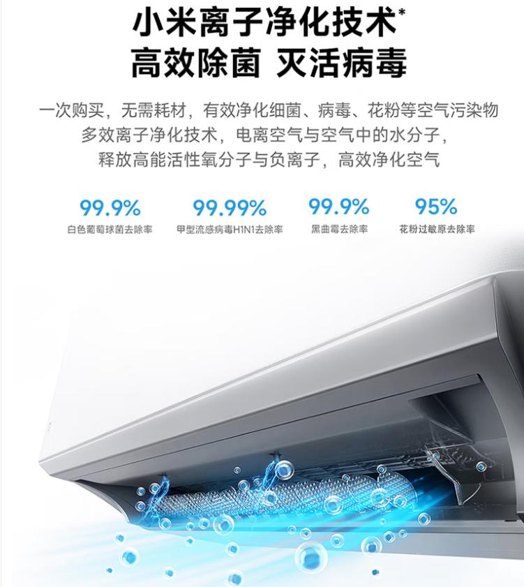 光風(fēng)舒服還不夠,空氣干不干凈更重要!這款空調(diào)搭載了 “小米離子凈化技術(shù)”。簡(jiǎn)單說(shuō),就是它能釋放帶電粒子(離子),主動(dòng)去捕捉、破壞空氣中飄浮的壞東西。