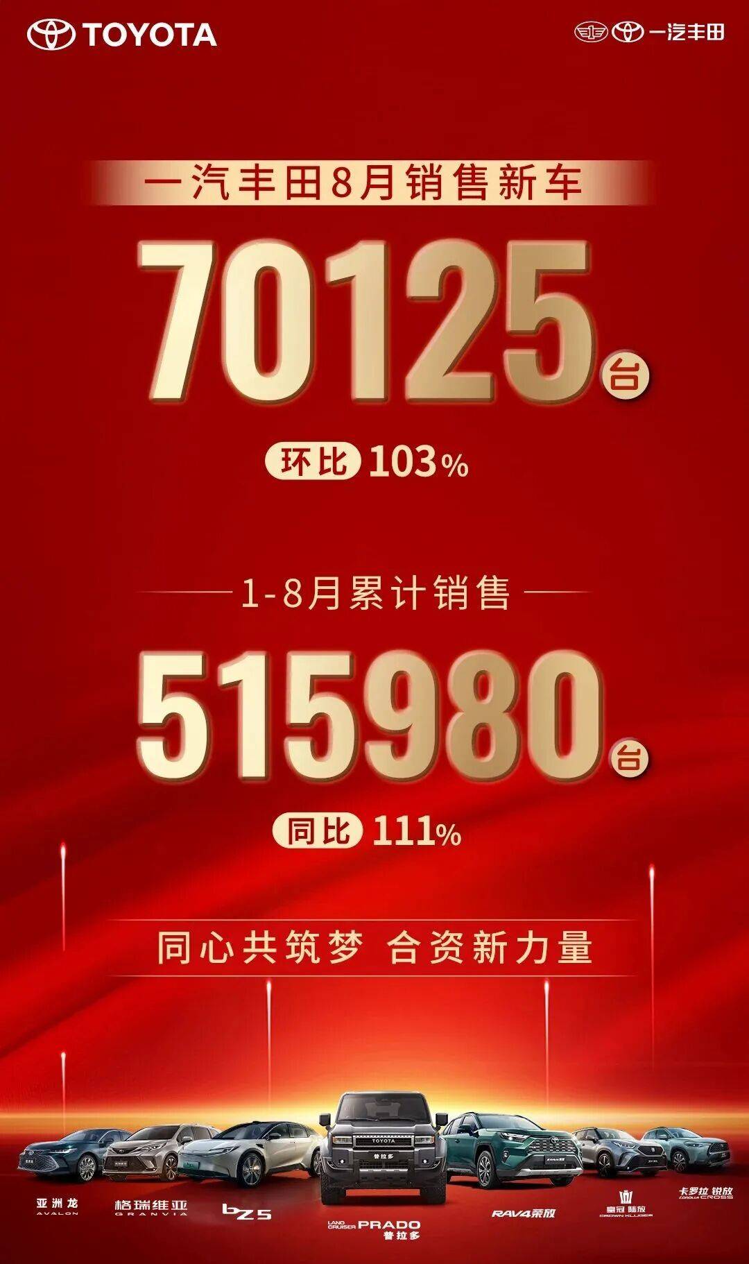一汽正是這種實(shí)踐的有力案例。9月1日,一汽豐田率先公布8月銷售成績。2025年8月,一汽豐田銷售新車70,125輛,1-8月累計(jì)銷售515,980輛,同比增長11%,增速遠(yuǎn)超其余兩家日系品牌。一汽豐田的突破,在于其對中國市場的精準(zhǔn)洞悉以及對合資模式的重新定義。“立全球,更中國”不是一句簡單的口號,而是從組織架構(gòu)到研發(fā)體系,再到管理體制及最終產(chǎn)品的一致貫徹。