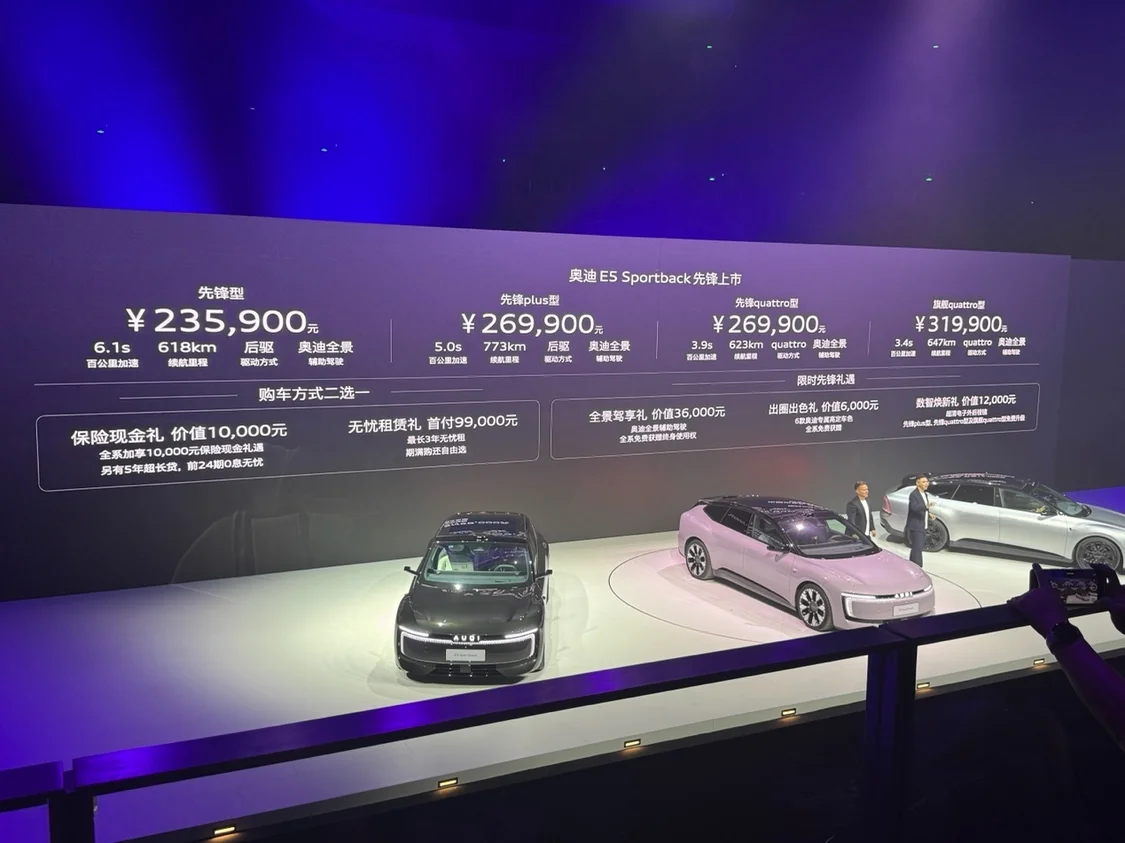 9月16日,上汽奧迪在廣州大灣區體育中心舉辦發布會,宣布新車奧迪E5 Sportback正式上市,新車共推出4款車型,售價區間為23.59-31.99 萬元。
