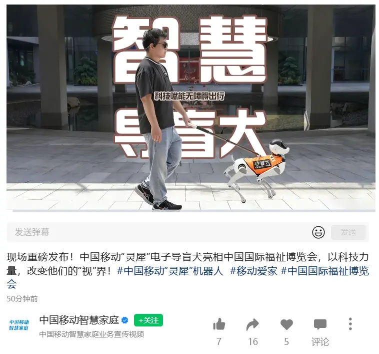 中國移動“靈犀”電子導(dǎo)盲犬發(fā)布,可主動導(dǎo)航,AI大模型對話交流