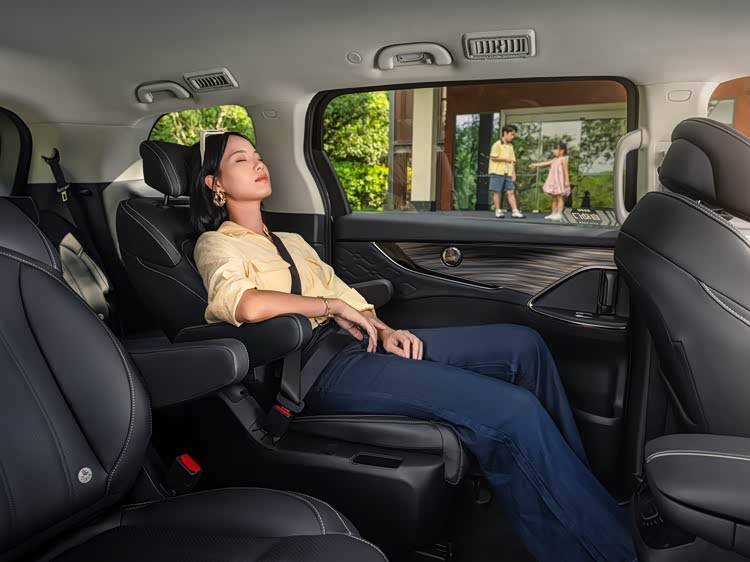 空間靈活度上,星海V9展現出“魔術級”實力。5230mm車長搭配3018mm軸距營造出 5.54㎡座艙,第三排下沉放平設計讓后備箱從593L拓展至2616L,嬰兒車、露營裝備等大件物品輕松容納。車內42處儲物空間與6kW外放電功能,更讓家庭出行的收納與休閑需求得到滿足。