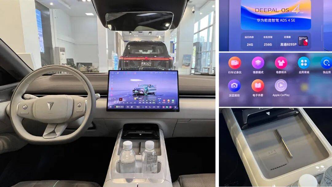 另外,Deepal OS也采用了新的界面,UI扁平化很高,而且功能相當(dāng)豐富。另外,它語音控制還接入了DeepSeek,語音交互的表現(xiàn)相當(dāng)智能。不僅如此,它還有55英寸HUD抬頭顯示,遠(yuǎn)程控制以及手機(jī)50W無線充電面板,使用也是十分方便。