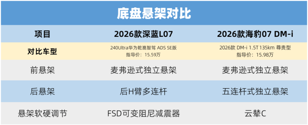 如今自主品牌都在發(fā)展底盤技術(shù),2026款深藍(lán)L07和比亞迪海豹07 DM-i的策略都很靠前,都希望通過主動(dòng)懸架來實(shí)現(xiàn)更好的舒適性和行駛表現(xiàn)。