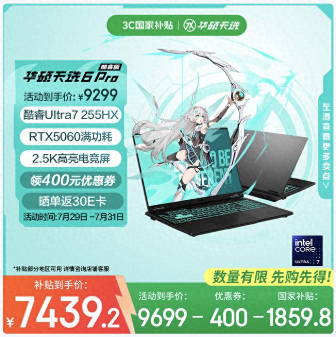 對于準大學生而言,一臺完全屬于自己的筆記本是必不可少的,尤其是在當前短視頻內(nèi)容創(chuàng)作為主流的大市場環(huán)境下,不少學生都選擇了相關的專業(yè),或者是通過自學掌握短視頻、AI大模型等的技能。所以在選購筆記本時,出色的性能肯定首要條件。華碩天選6 Pro 酷睿版搭載了酷睿Ultra7 255HX處理器,滿功耗RTX 5060獨顯,無論是運行adobe全家桶,還是大型3A游戲,都能帶來絲滑流暢的使用體驗。而且,活動售價9699元,現(xiàn)在有滿減+國補優(yōu)惠后,到手價僅7439.2元,難怪在這個暑期,成為學生黨首選的爆款!