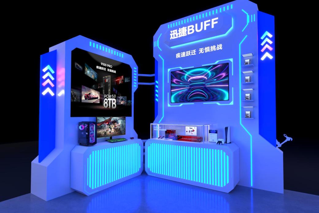 “迅捷BUFF”體驗區以三星9100 PRO固態硬盤為驅動,滿血PCIe5.0性能+超大容量,通過《刺客信條:影》和《索尼克x夏特:世代重啟》游戲,讓觀眾們感受它為高能游戲PC和索尼PS5主機帶來的迅捷加成。