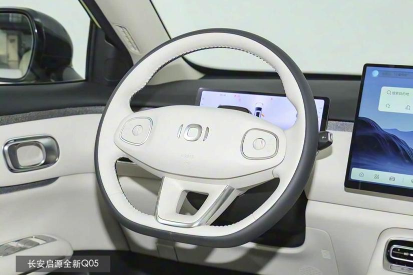 長安啟源全新Q05的座艙則要干練高級一些,除了雙色方向盤外,貫穿式副儀表臺+扶手箱、軟包覆蓋的門板扶手等等都有足夠檔次。中控臺上則有了10.17+15.6英寸雙液晶屏,更大的屏幕在各項功能交互上要更直觀一些,也利于觸控操作,搭配256色主動氛圍燈與8揚聲器,艙內娛樂性會更高。