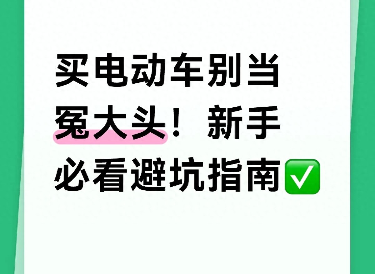 不管是兩輪還是四輪電動車,新手買都容易被續航、配置等噱頭忽悠,這份避坑指南幫你避開大部分套路,少花冤枉錢: