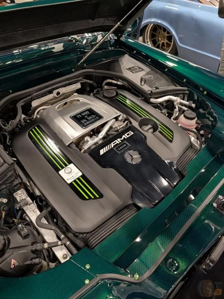 將600 Pullman外殼套上S63之后,S-Klub還是覺得太素了,于是還增加了手工打造的寬體翼子板,融合S63的前包圍,S63排氣口,碩大的尾翼,綠色金屬漆,還有定制的后視鏡和手繪油箱蓋裝飾等等。燈組改用了定制LED光源,輪轂方面采用HRE電鍍輪轂,這一系列細節無一不透視著團隊的用心和創意。