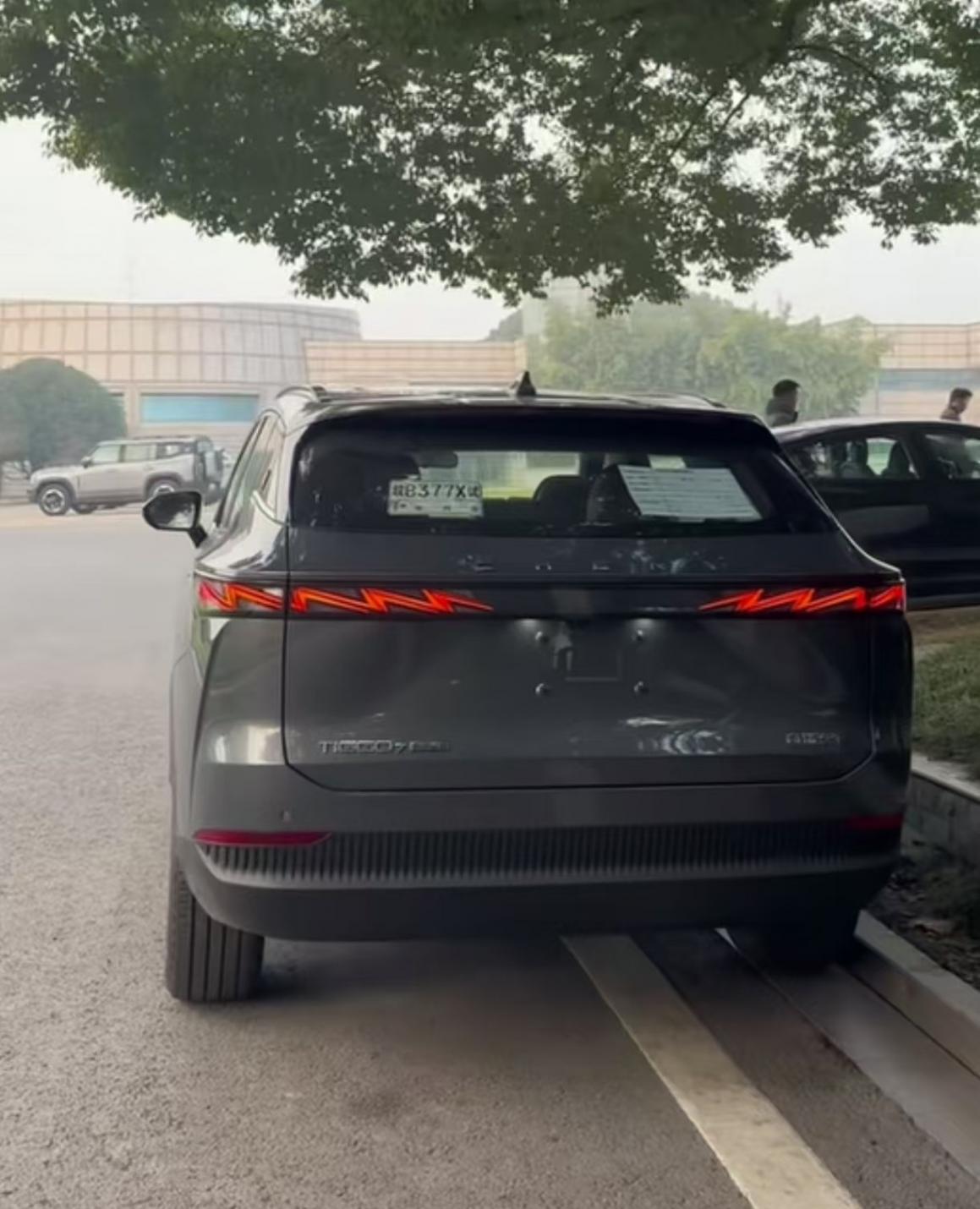 全新瑞虎7 PLUS的尾部視覺重心要比現(xiàn)款車型低了一些,熏黑貫穿式尾燈內(nèi)部結(jié)構(gòu)重新設(shè)計(jì),改成了閃電狀的紅色光帶,而排氣筒被隱藏在了車底,個(gè)人覺得如果能夠來個(gè)外露雙邊排氣筒,將會(huì)更討年輕消費(fèi)者喜歡。