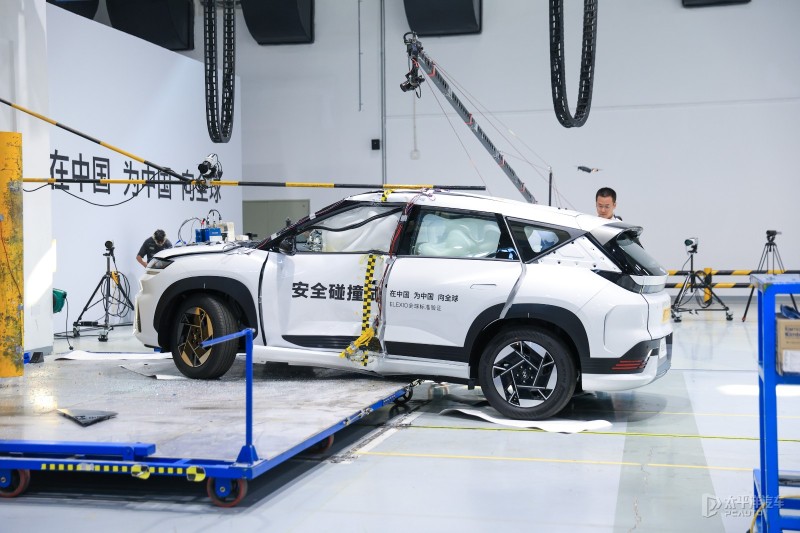側面碰撞試驗則是以32km/h速度進行,試驗車與柱狀標靶物進行碰撞,過程滿足C-NCAP與A-NCAP標準。試驗結果顯示,試驗車同樣實現氣囊打開、車門解鎖及電安全。