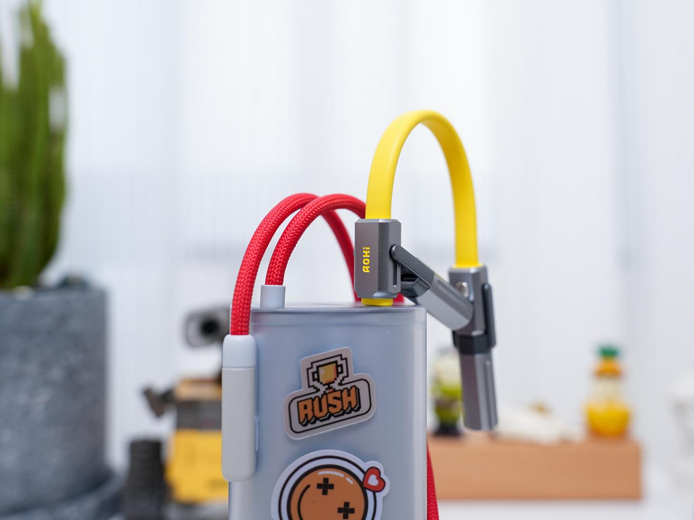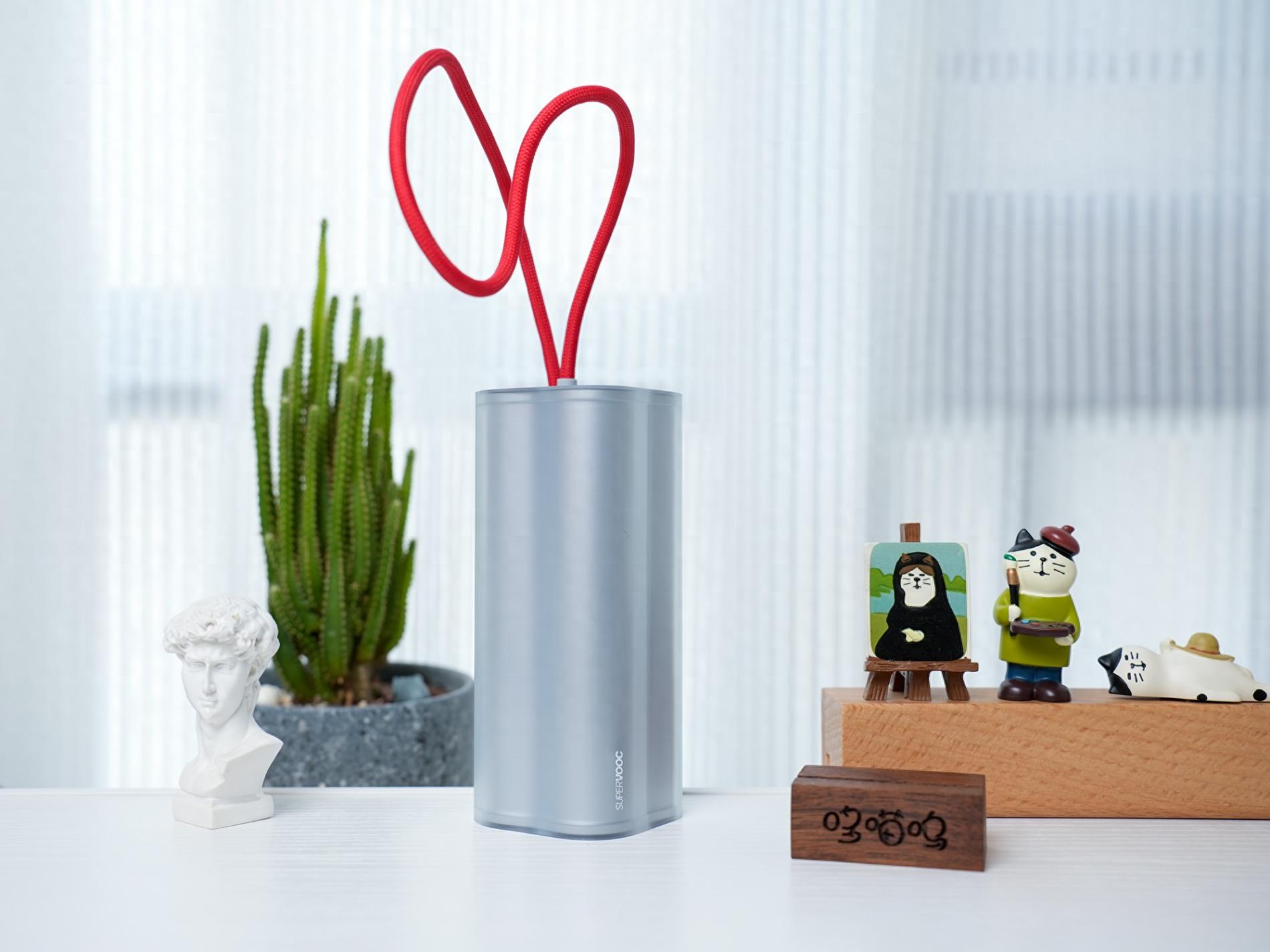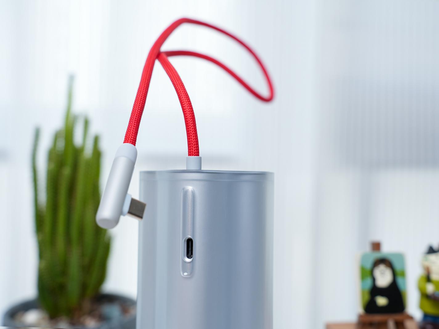 ▲充電寶自帶的49cm長的編織數(shù)據(jù)線,采用一加標志性的紅色設(shè)計,充電接口采用L口設(shè)計,在橫屏玩游戲時不會礙手,另外自帶收納插口,內(nèi)凹設(shè)計輔助固定,可以讓線材變?yōu)閽炖K提著充電寶使用,設(shè)計上面還是很有巧思的。