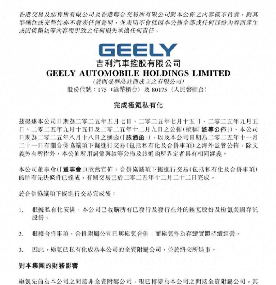 在如今汽車行業(yè)風(fēng)起云涌的時(shí)代,吉利汽車正以一種迅猛的姿態(tài)重新定義自己的未來(lái)。從22年底吉利宣布與極氪的整合,到這次整合的全面落地,吉利無(wú)疑正在為自己鋪設(shè)一條全新的發(fā)展道路。對(duì)吉利而言,這不僅僅是一次普通的公司并購(gòu),而是一場(chǎng)為未來(lái)而精心策劃的戰(zhàn)略大棋。隨著極氪的退市,吉利正在以更靈活、更專注的姿態(tài),向著科技引領(lǐng)型的全球企業(yè)邁進(jìn)。