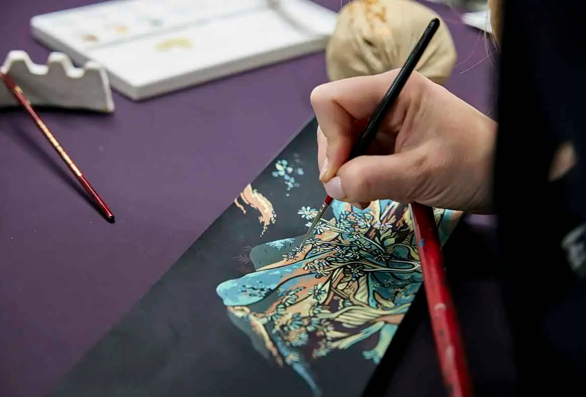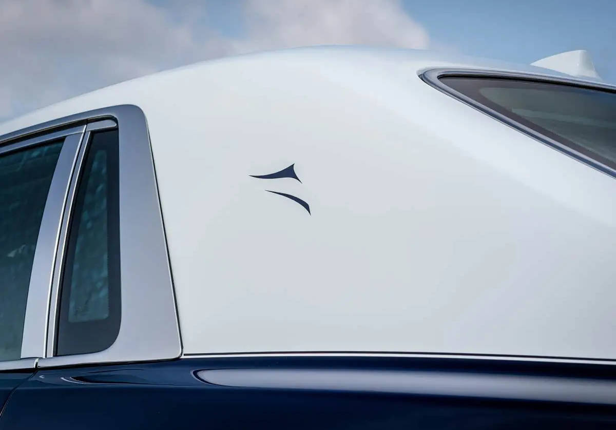 內飾方面,車內配備了手工繪制的定制畫作。畫作展現了敦煌壁畫中飛天神女的景象,采用了中國傳統的“減法木刻印刷”技法,每一層畫作都通過細膩的畫筆逐層渲染,以呈現深度和節奏感。座椅使用了黑色和喀什米爾灰色皮革,前后車門則采用了不同色調的Canadel木飾板。后門面板內嵌“不朽的絲綢”圖案,象征著敦煌壁畫中的藝術元素。
