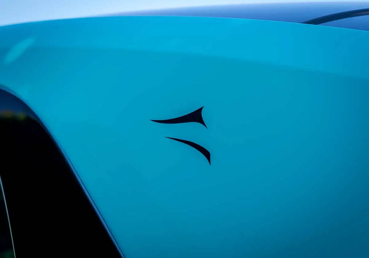 閃靈Black Badge呈現出戲劇化的“空靈”雙色車身。車身使用“青山藍”色,這一色調靈感來自敦煌壁畫中的山脈藍色與青蔥色,而車身上部和車身C柱、車線則使用了對比鮮明的“鉆石黑”色。車頭采用了透光的綠松石色裝飾,進一步提升了外觀的戲劇性。
