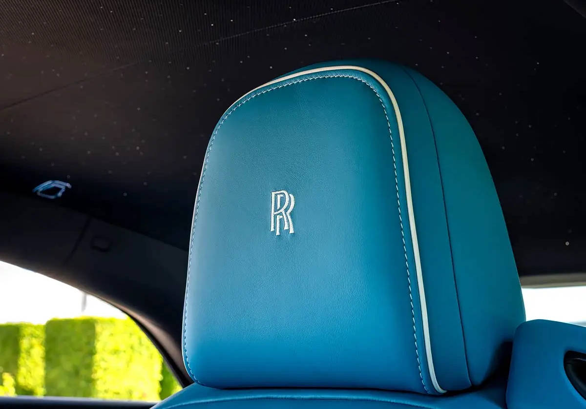 座椅采用綠松石色和黑色皮革搭配,后排座椅則為黑色,配有對比鮮明的白色縫線。車內的絲綢之魂圖案被鑲嵌在綠松石色的照明踏板上,此外,車門和定制星空頭頂內飾也通過1,344顆星光與192顆流星為乘客帶來獨特的光影效果。